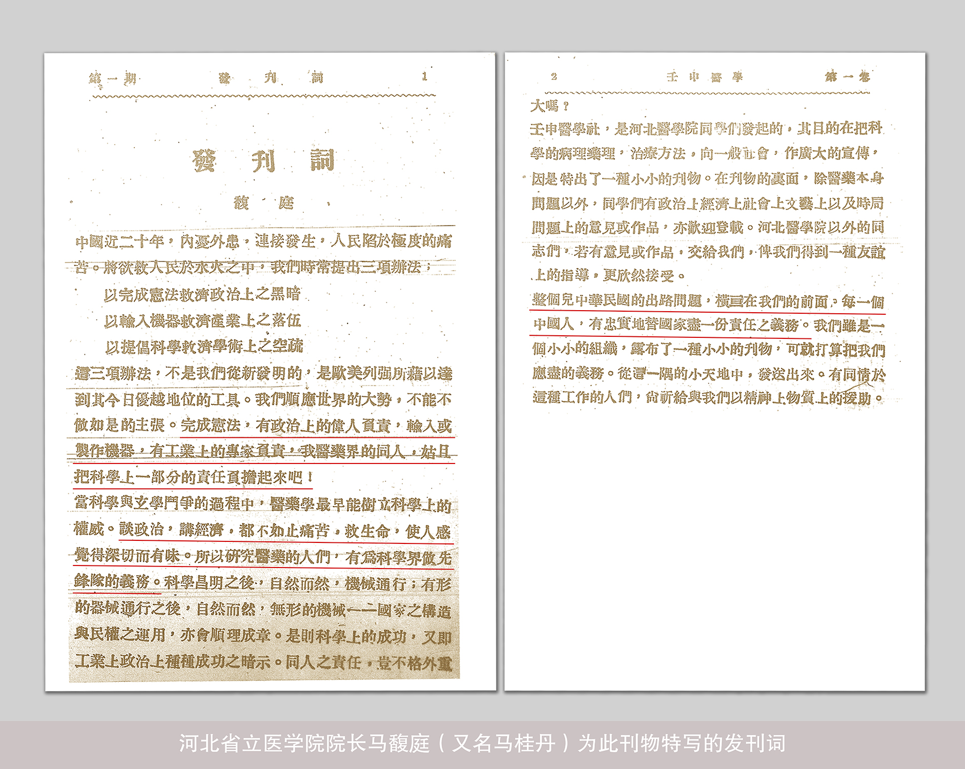 河北省立醫(yī)學(xué)院院長馬馥庭(又名馬桂丹)為《壬申醫(yī)學(xué)》特寫的發(fā)刊詞