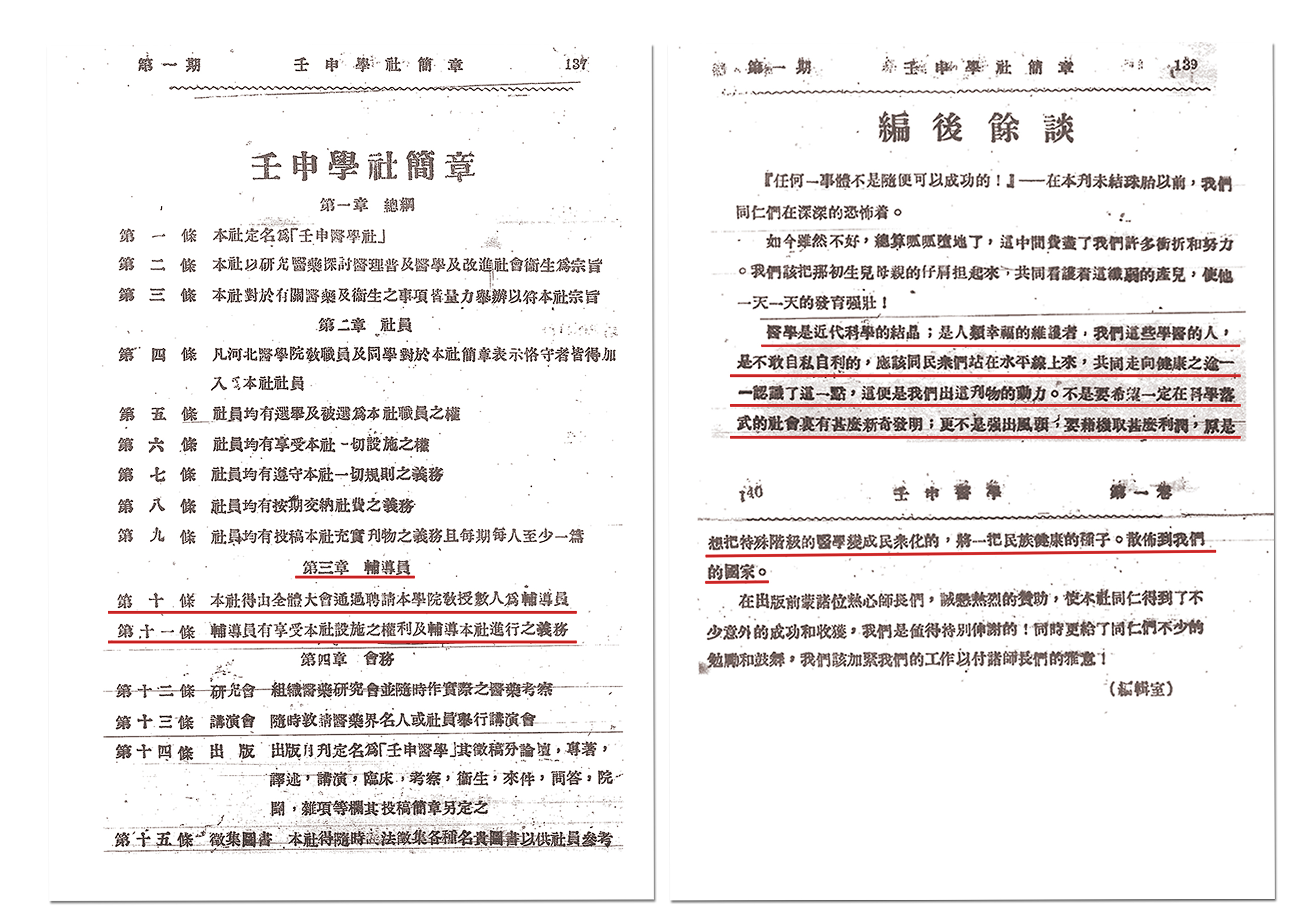 壬申醫(yī)學(xué)社社章及編后余談